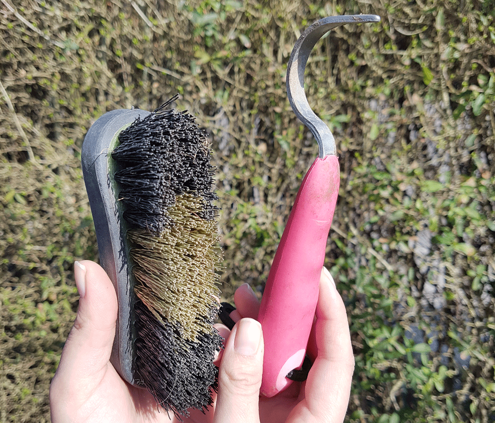 Behøver man en børste til sin hovrenser? Nej, man renser hovene primært for sten, og større ting som kan sidde fast. Børsten er til at gøre det “ekstra” og børste hoven ren så man kan se at der ikke sidder noget fast.