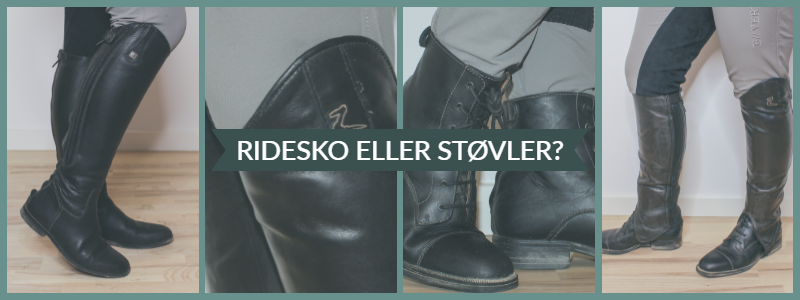 En ridestøvle giver mere støtte og gør at man har nemmere ved at holde benet i ro. Jeg rider helst i ridestøvler selv, men er det en varm sommerdag så hopper jeg i mine ride sko da læderstøvlen kan blive meget varm i solen.