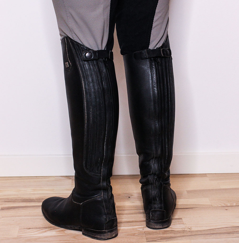 Når man rider ridestøvler til, falder skaftet lidt. Derfor kan de godt gnave lidt i knæhasen i starten. Det kan man afhjælpe ved at købe et par hælløft indsatser